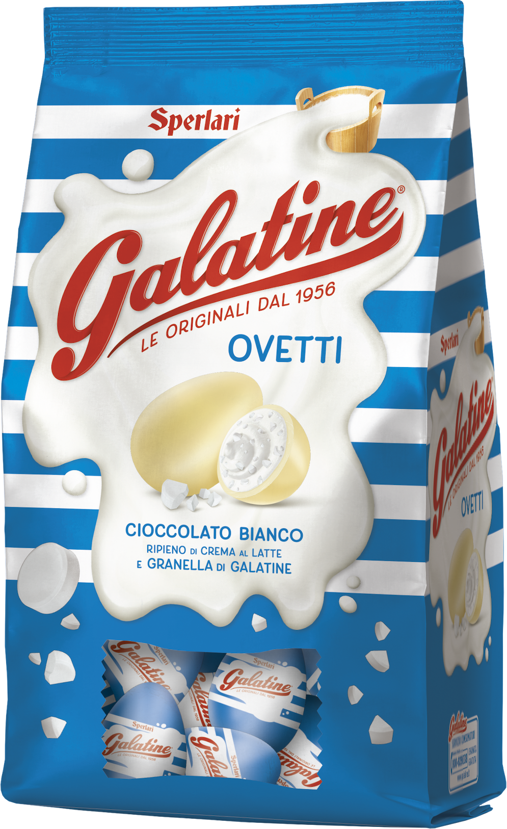 Il gusto originale di Galatine racchiuso in un goloso ovetto di cioccolato: guscio di cioccolato bianco con note di miele e yogurt, ripieno di crema al latte e arricchito con croccante granella di Galatine. Per un momento di dolcezza senza precedenti!